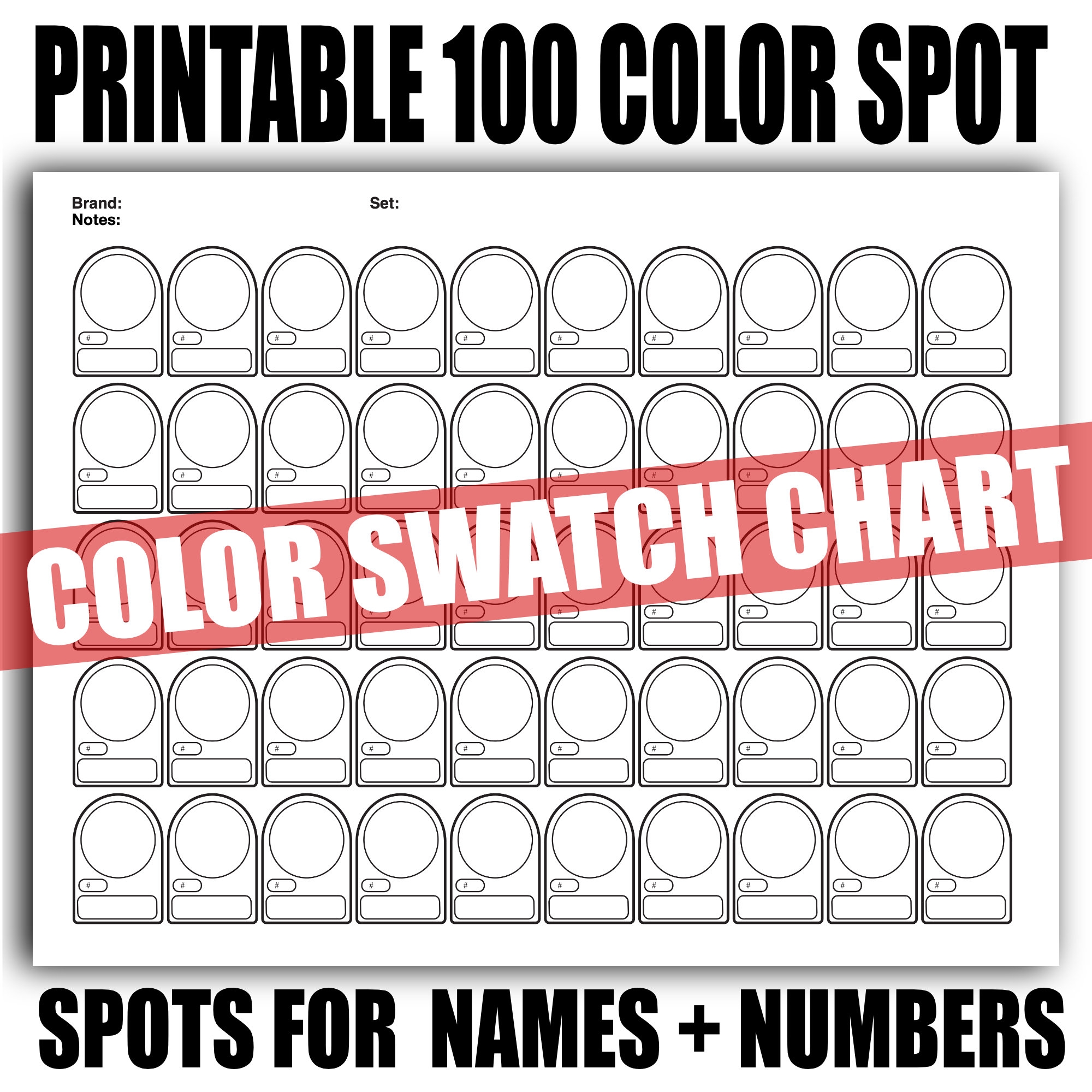 100 Color Swatch Chart BLANK DIY Spots For Color Names Numbers PDF Template Etsy