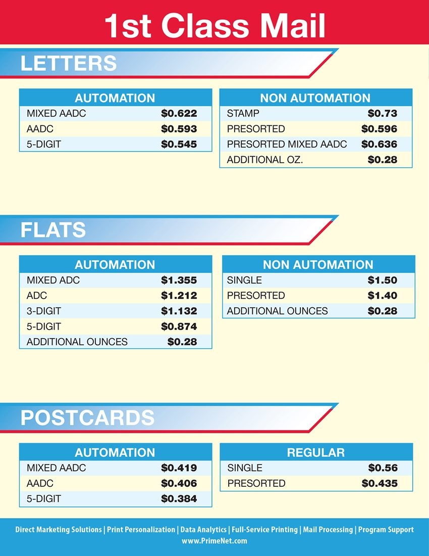 Postage Chart PrimeNet Direct Marketing Solutions