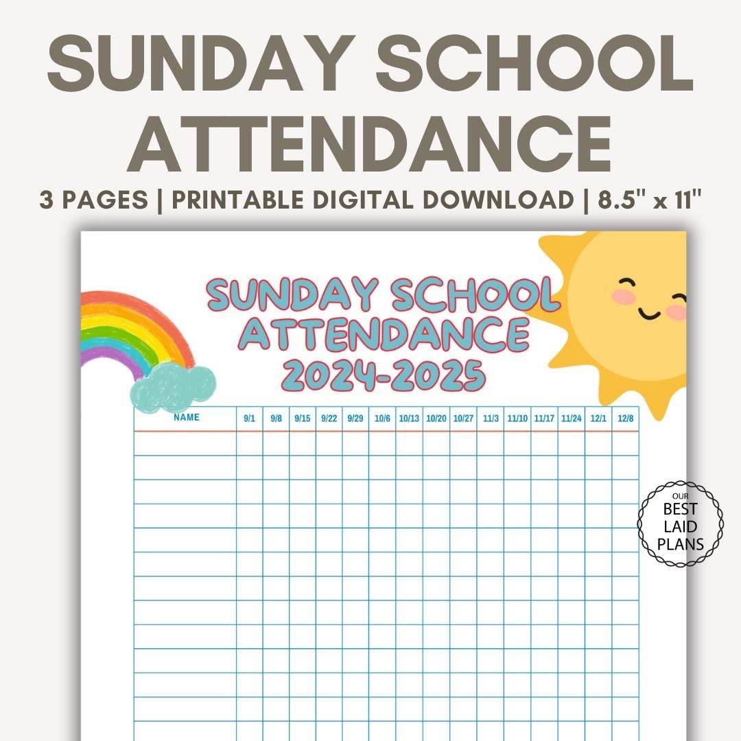 Sunday School Attendance Chart Printable PDF Sunday School Attendance Sheet Digital Download Sunday School Materials Attendance Template Etsy UK