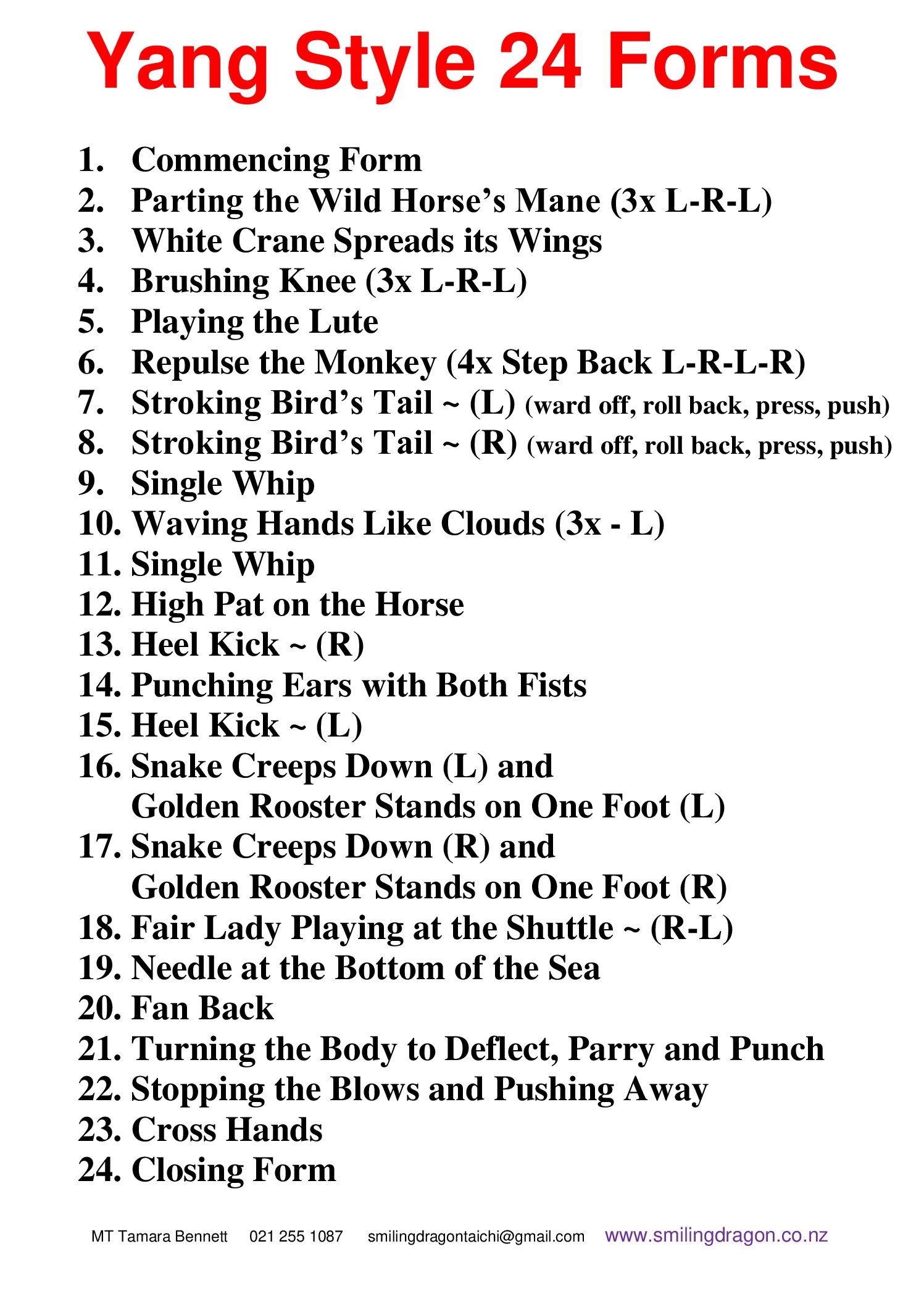 Beginners Printable Tai Chi Chart