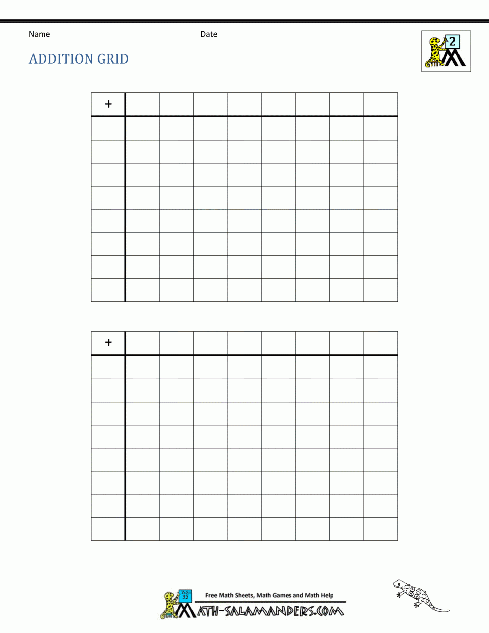 Blank Addition Chart Printable: A Helpful Resource for Math Practice