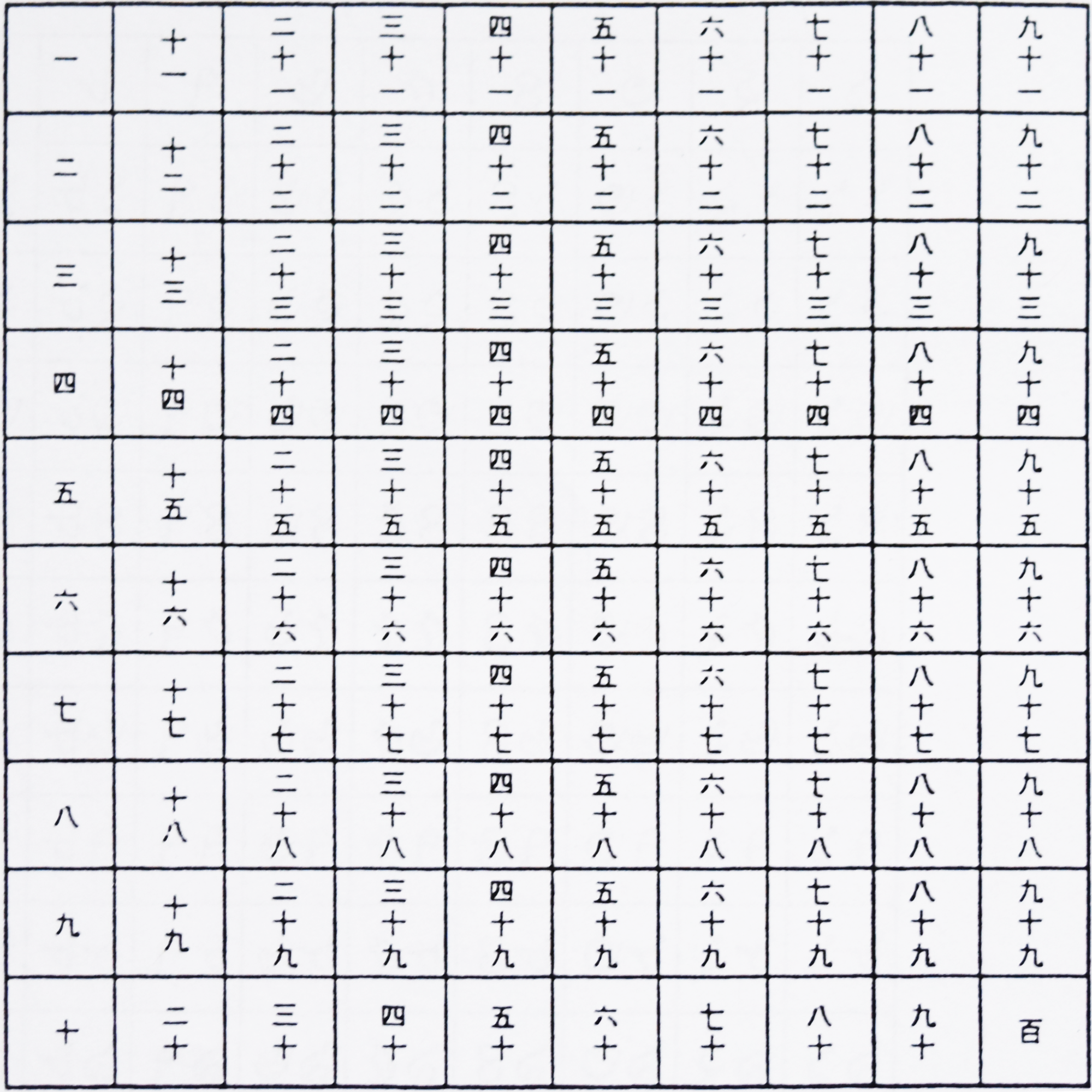 Chart Printable Chinese Numbers 1 100