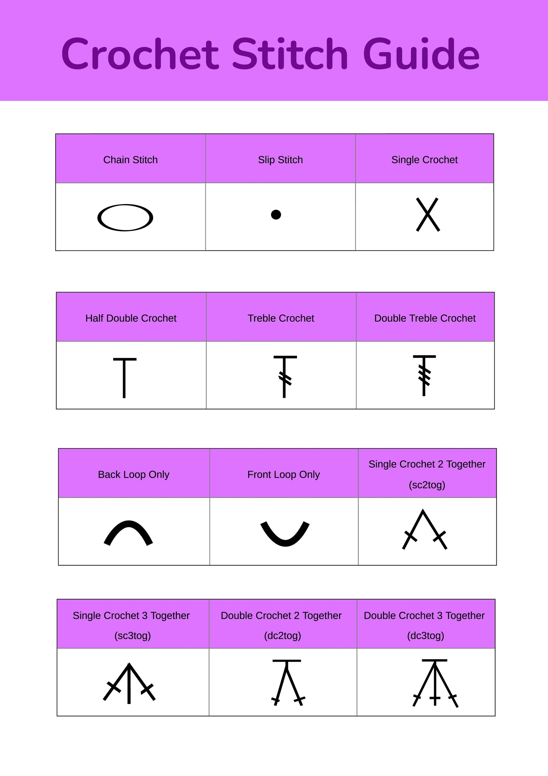 Crochet Symbols Chart Printable