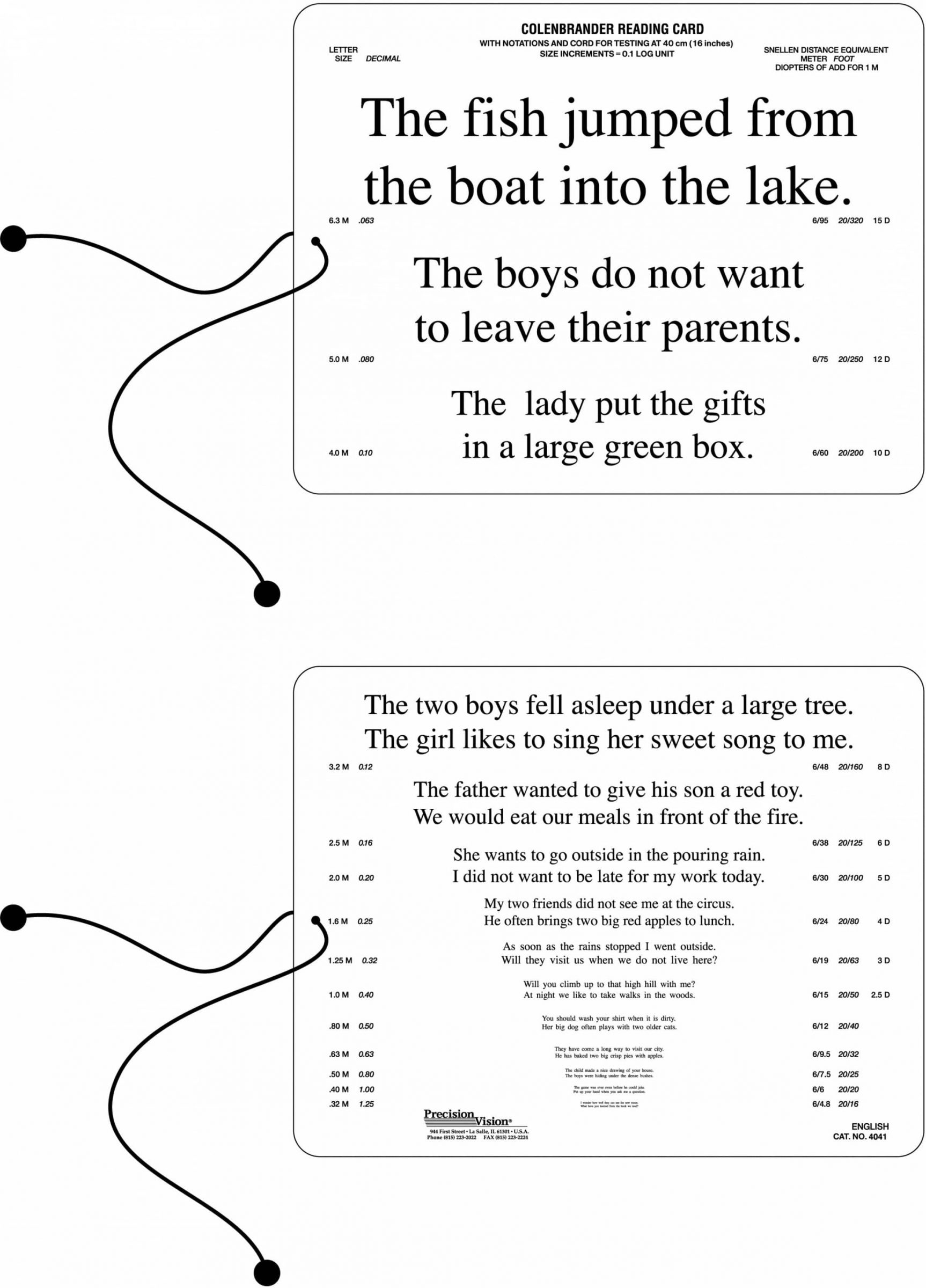 Colenbrander Reading Card Near Vision Standard Contrast Precision Vision