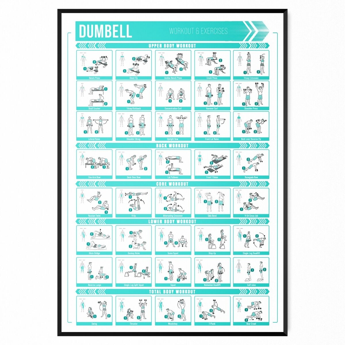 Dumbbell Workout Chart Fitness Training Chart Exercise Poster Print A5 A1