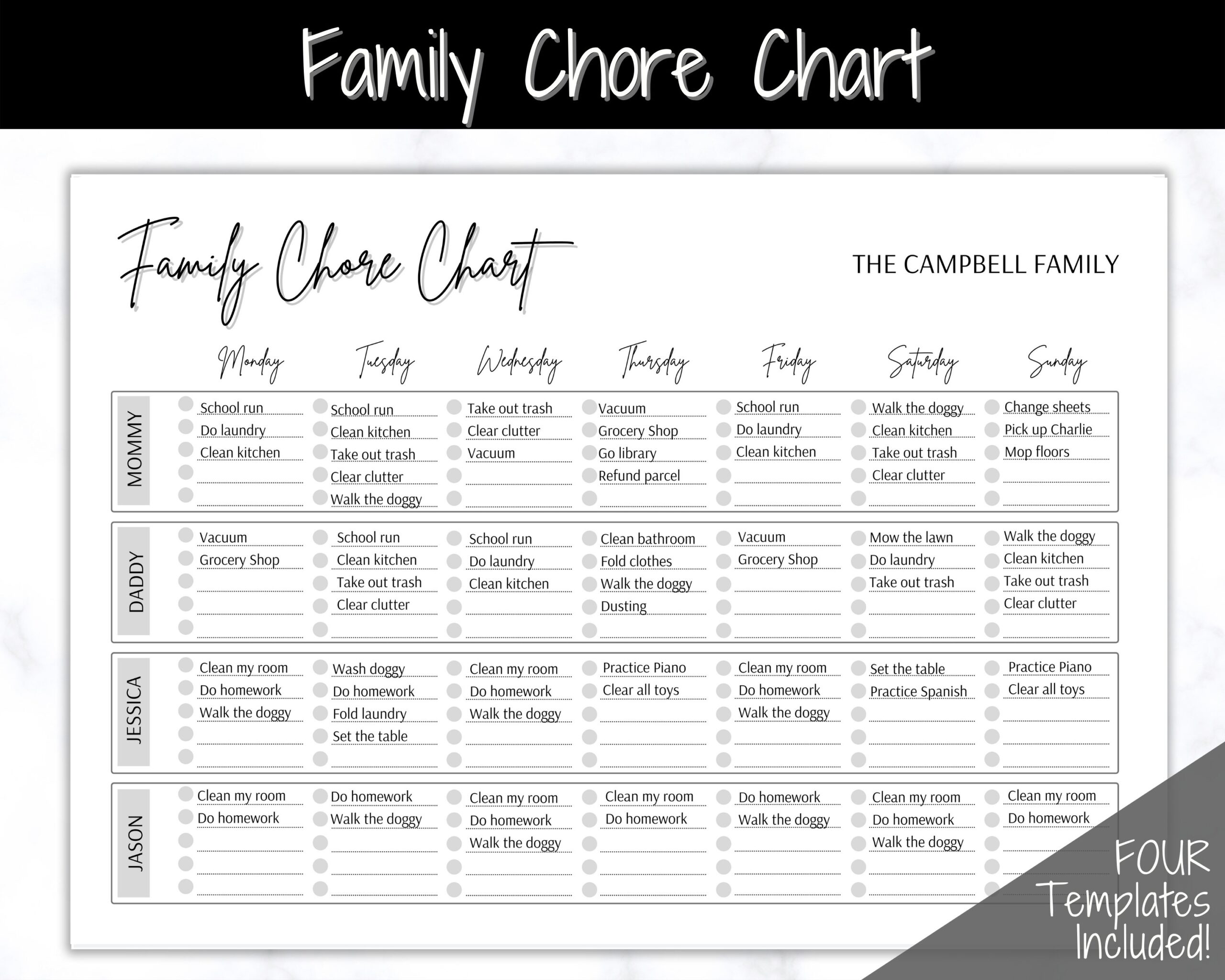By involving the whole family in creating and using the chore chart, you can foster a sense of teamwork and cooperation. Encourage open communication and establish rewards for completing tasks to motivate everyone to participate in household chores.