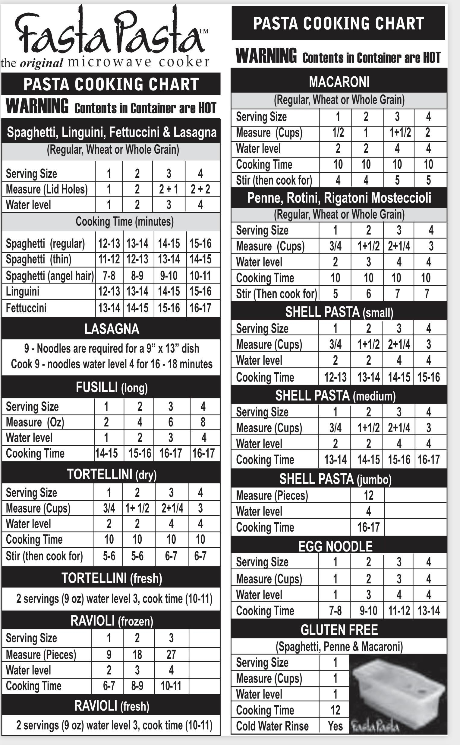 Fasta Pasta Cooking Chart Printable