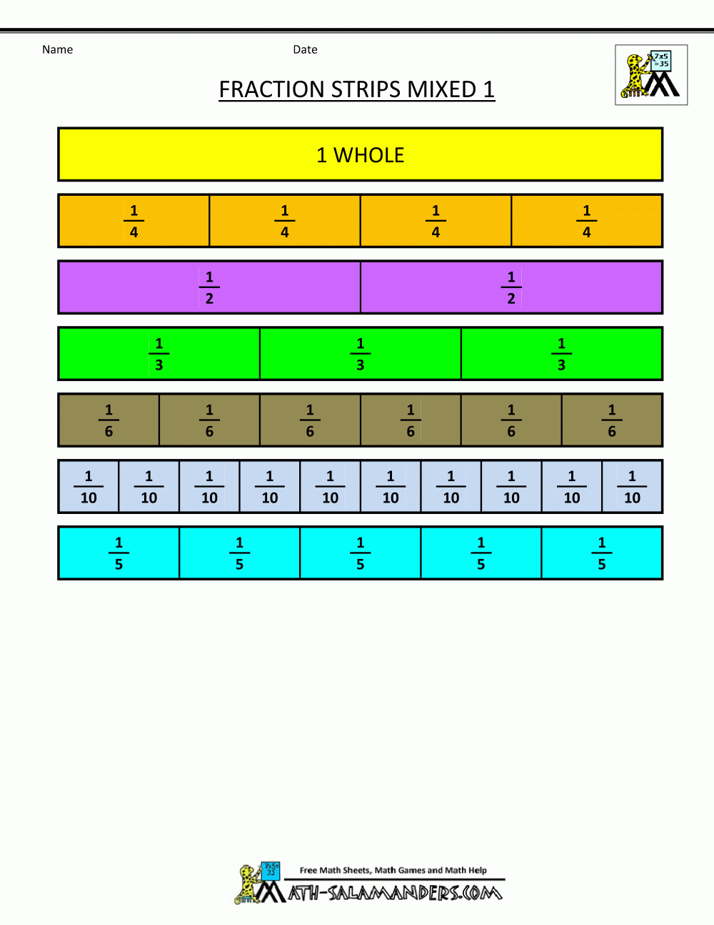 Printable Fraction Strips Worksheets Library
