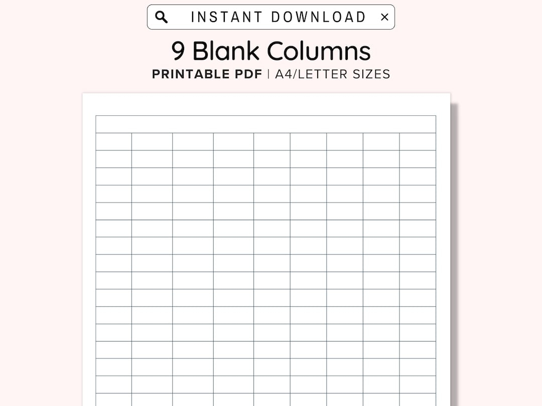 9 Blank Columns Chart Text Input Print And Write PDF Digital Download File A4 US Letter Size Not Fully Editable Templates Instant Download Etsy