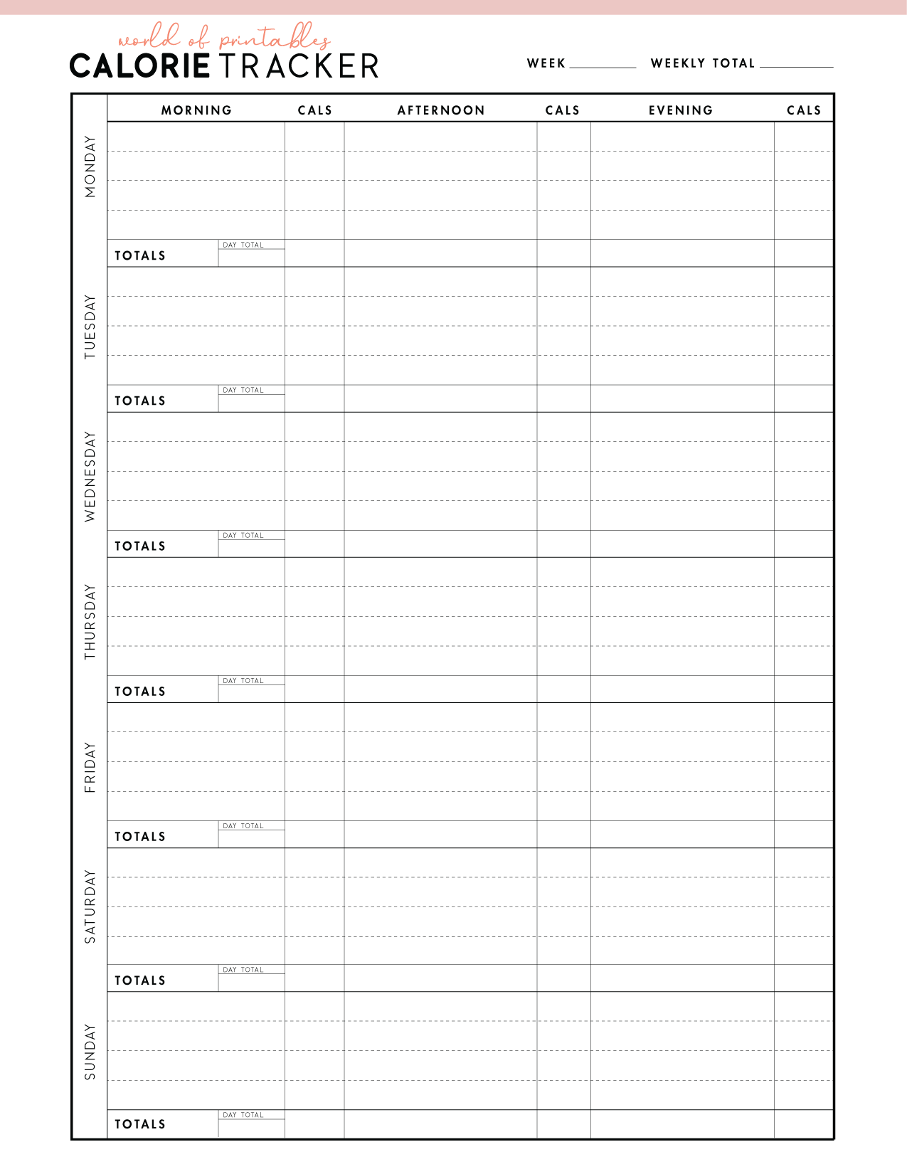 Free Printable Calorie Tracker World Of Printables