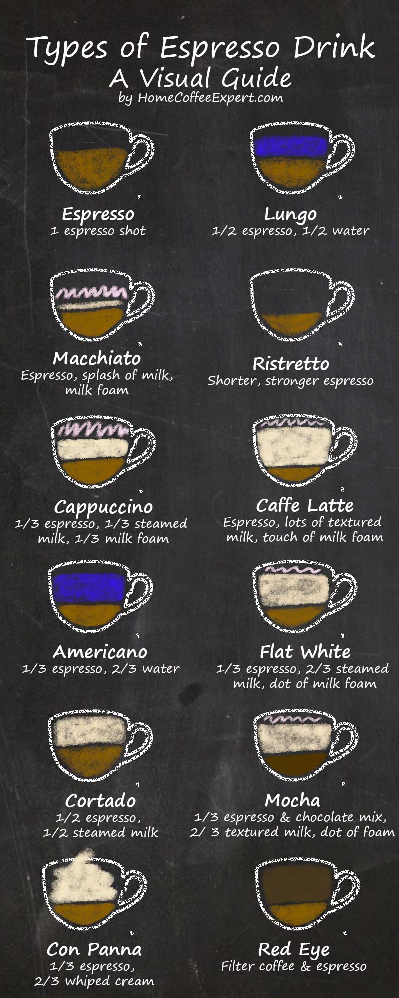 Whether you prefer your espresso drinks hot or iced, sweet or strong, our chart has you covered. With clear instructions on how to make each drink, you can recreate your favorites at home or impress your friends with your coffee knowledge.
