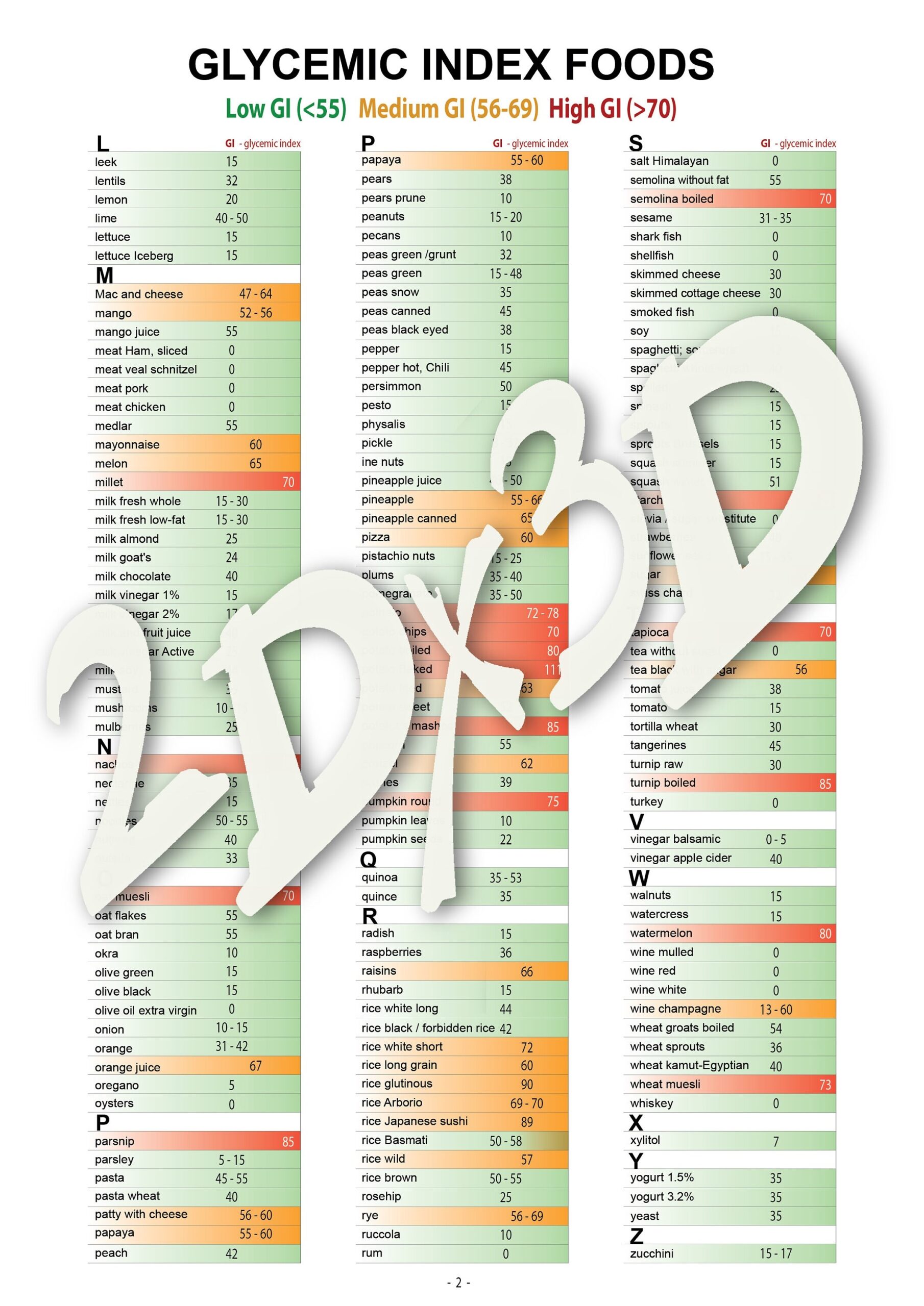 Glycemic Index Foods List At a glance 2 Page Pdf PRINTABLE DOWNLOAD Patient Education Glycemic Cheat Sheet Food For Low GI Diet Glycemic Etsy