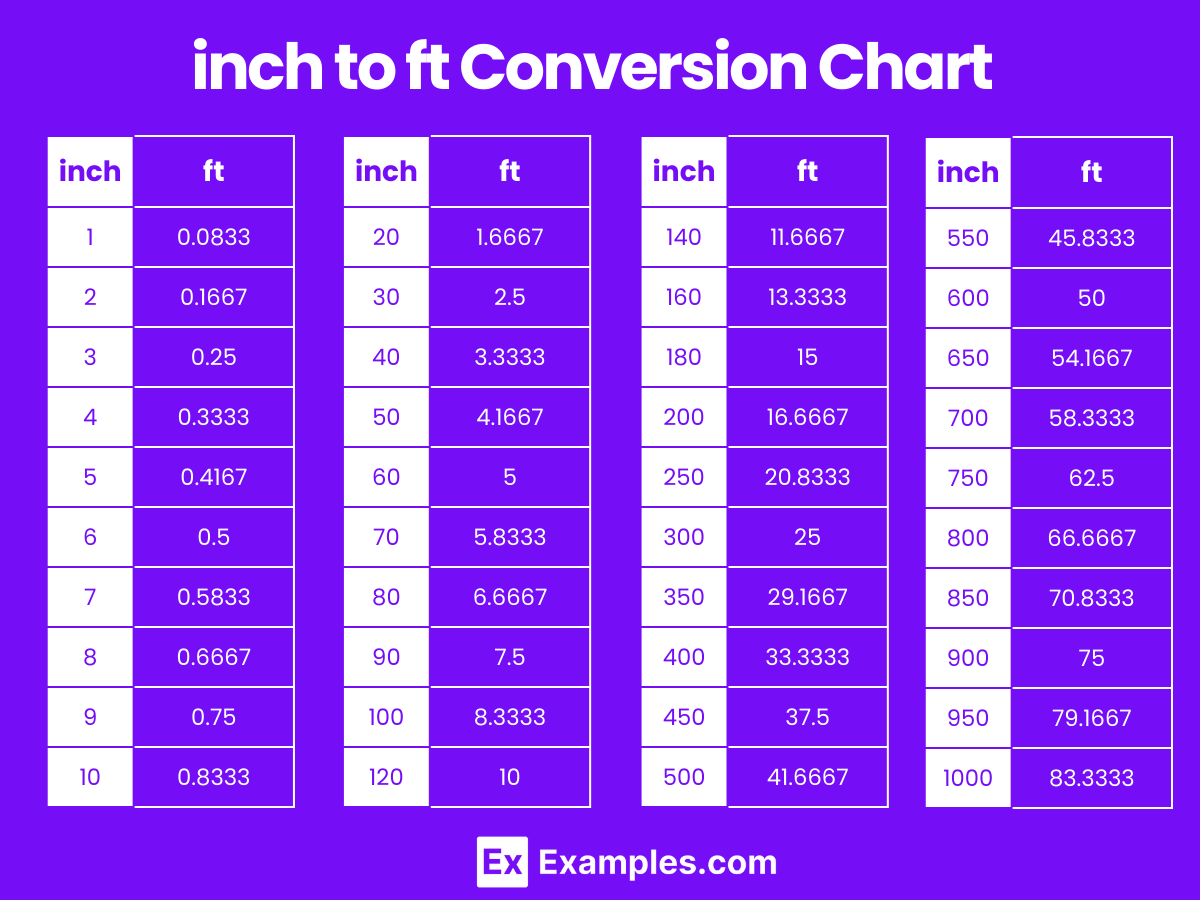 Feet To Inches Conversion Chart
