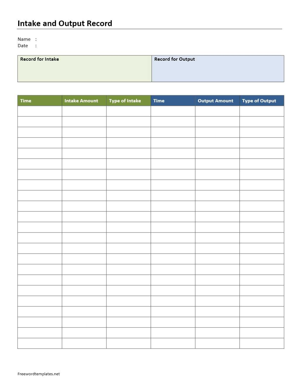 Creating your intake and output chart printable is easy. Simply draw a table with two columns: one for input (fluid intake) and one for output (urination). Fill in the amounts throughout the day and total them up at the end to get a clear picture of your hydration status.