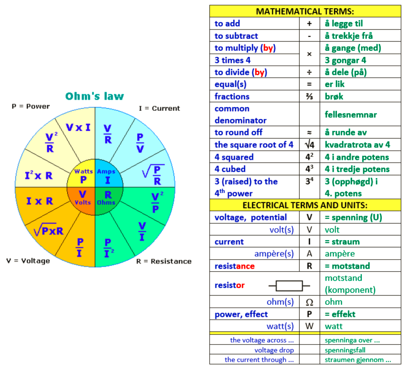 Ohm’s Law Chart Printable