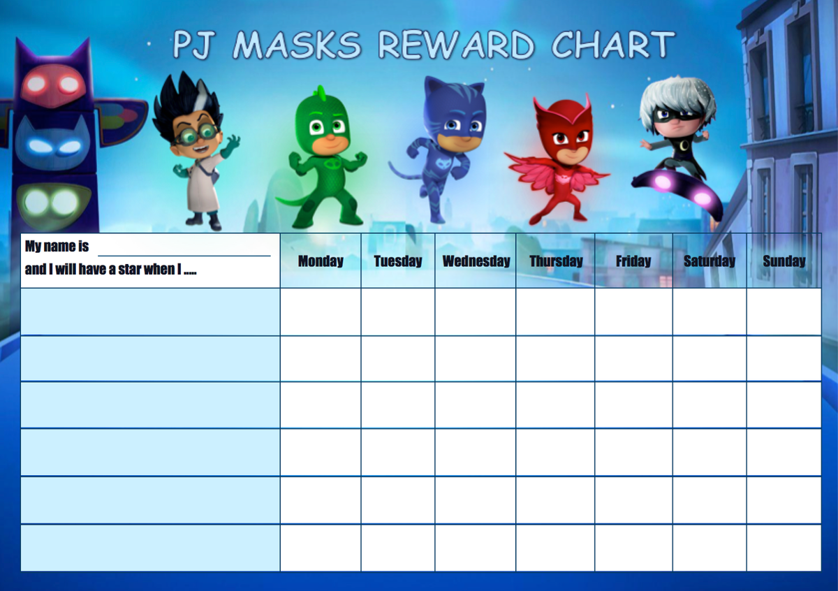 The PJ Masks reward chart is a fun and interactive way to encourage positive behavior in your children. With colorful characters from the popular TV show, your kids will be motivated to earn stars and complete their tasks to reach their goals.