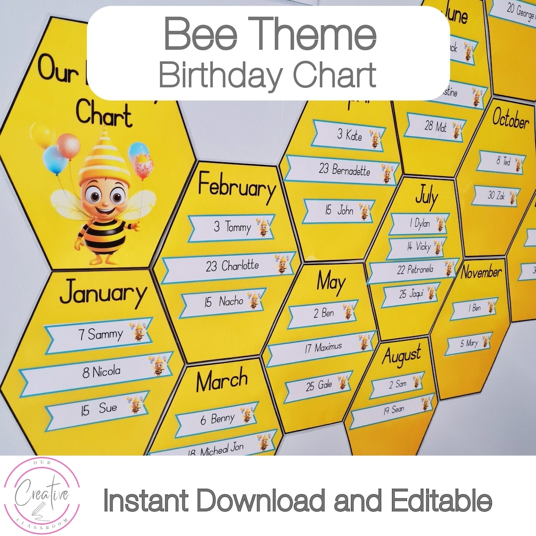 Buy Bee Themed Classroom Birthday Chart Ideas Printable Birthday Charts For Kindergarten Instant Download A4 8 3