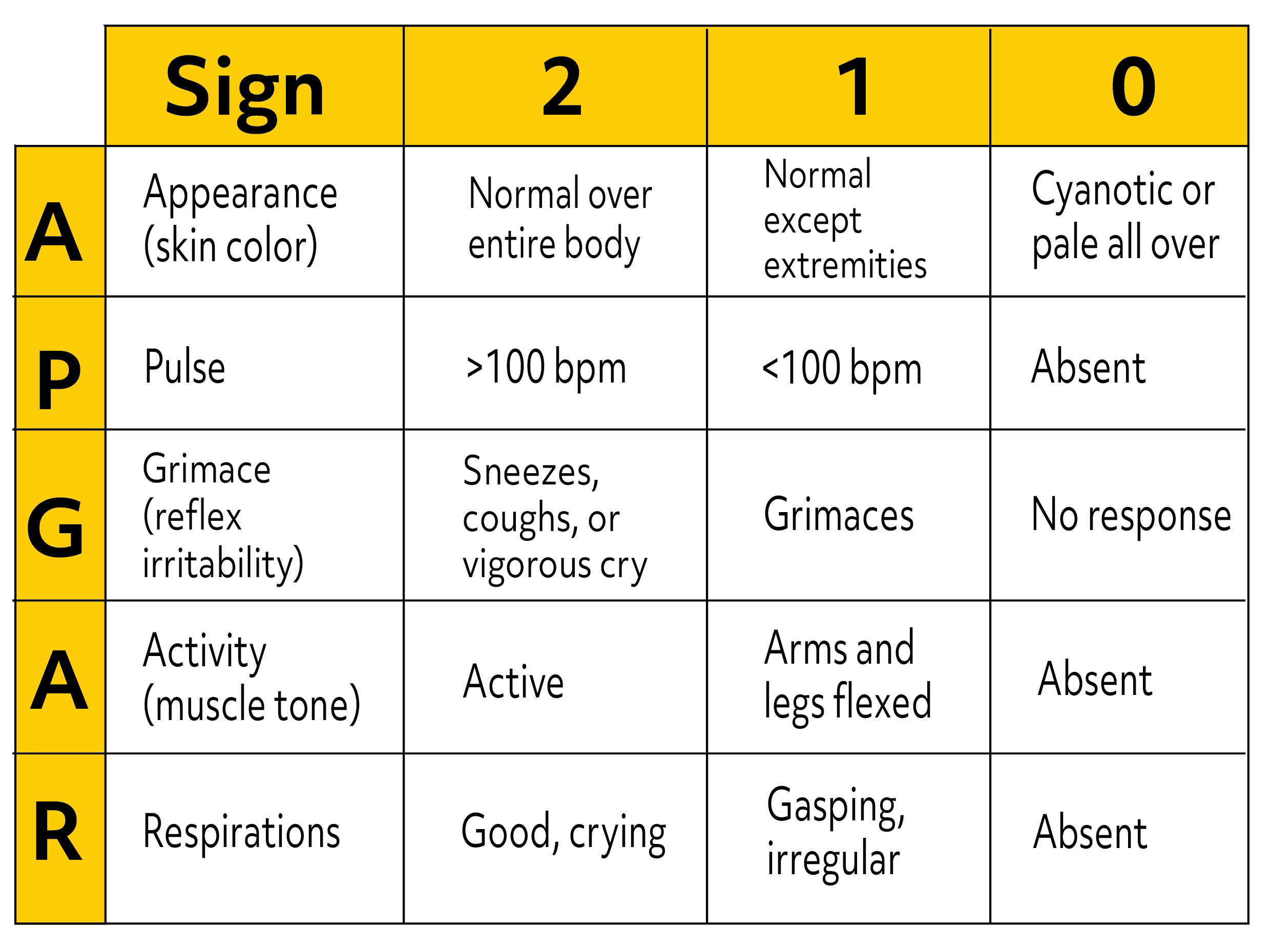 Apgar Scoring Table Mnemonic
