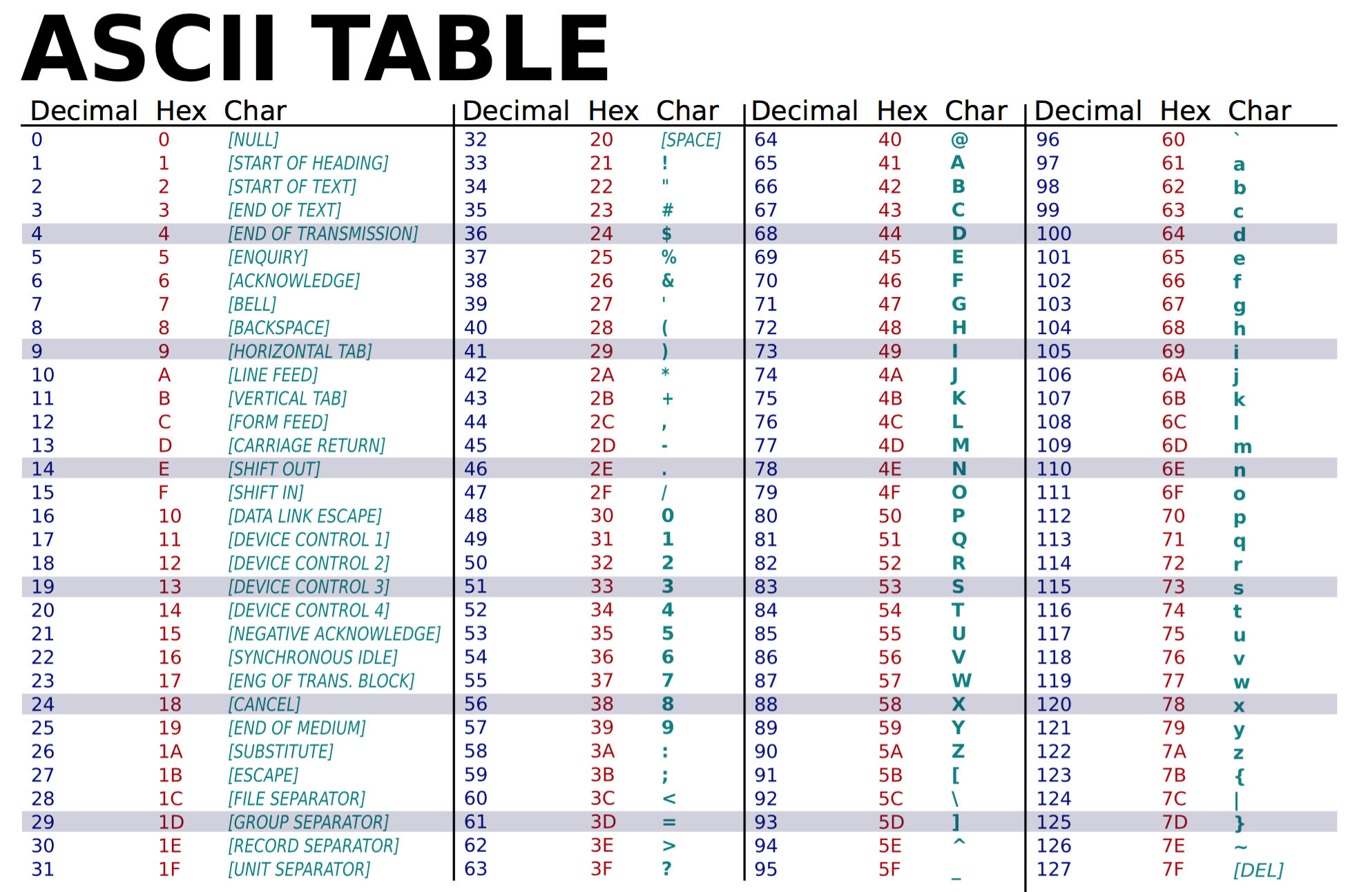 ASCII Table Printable Reference U0026 Guide lph rithms