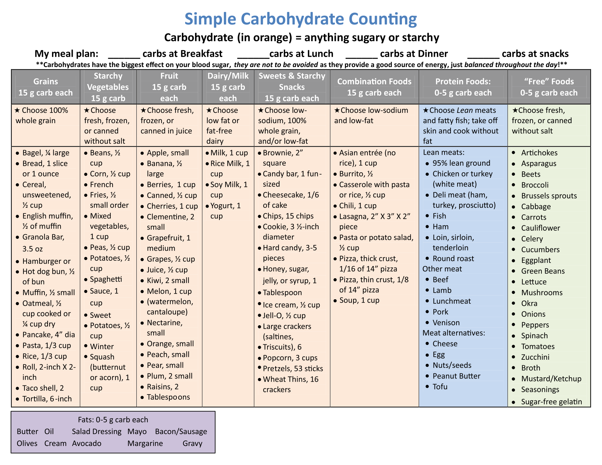 Managing diabetes can be challenging, especially when it comes to monitoring your carbohydrate intake. A printable carb chart can be a handy tool to help you keep track of your carb intake and make informed food choices.
