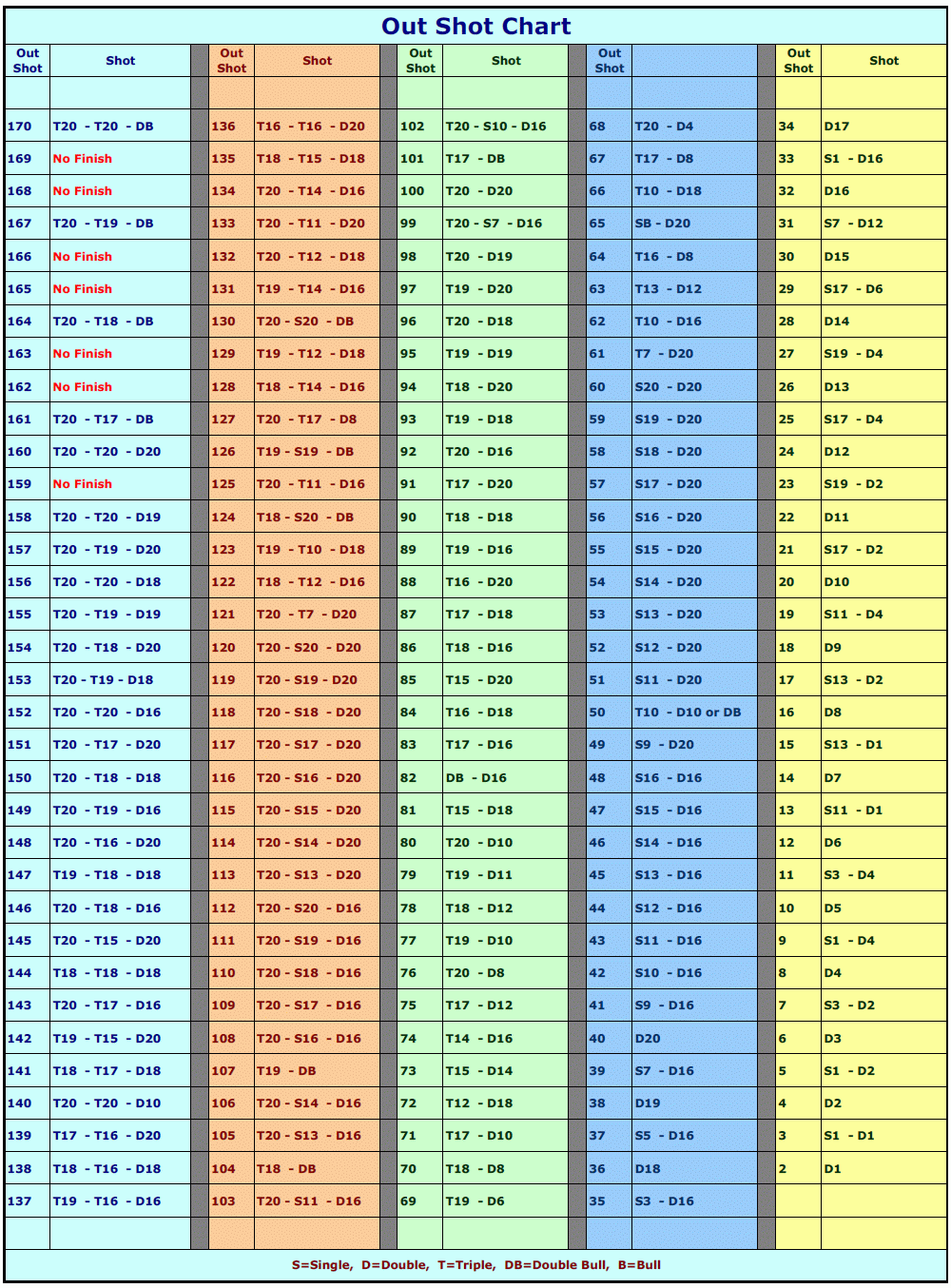 Whether you’re a beginner or a seasoned pro, having a dart out chart handy can help you calculate the best possible finish for any given score. It takes the guesswork out of your throws and allows you to focus on your game.