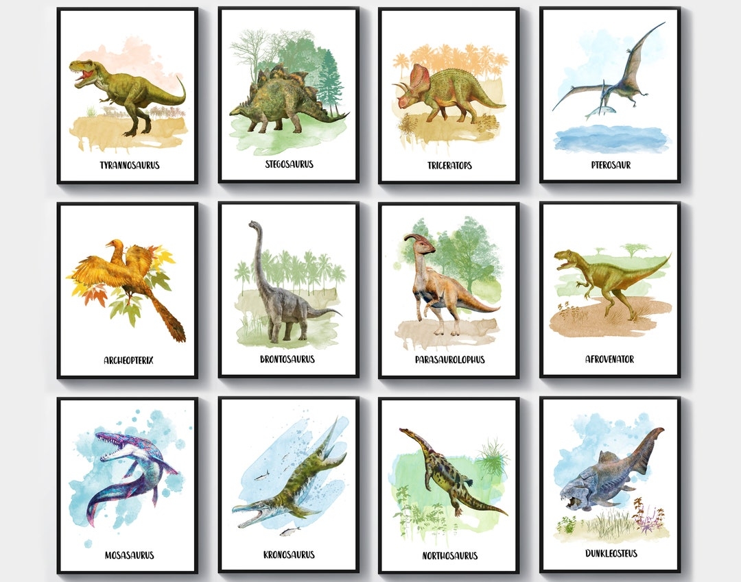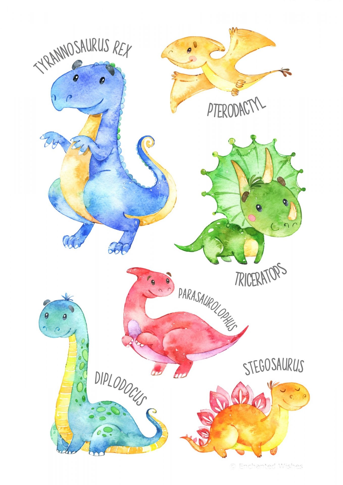 Dinosaurs Names Poster Set Of 12 Jurassic Dinosaur Art Watercolor Dinosaur Print T rex Triceratops Stegosaurus Brontosaurus Kids Room Etsy