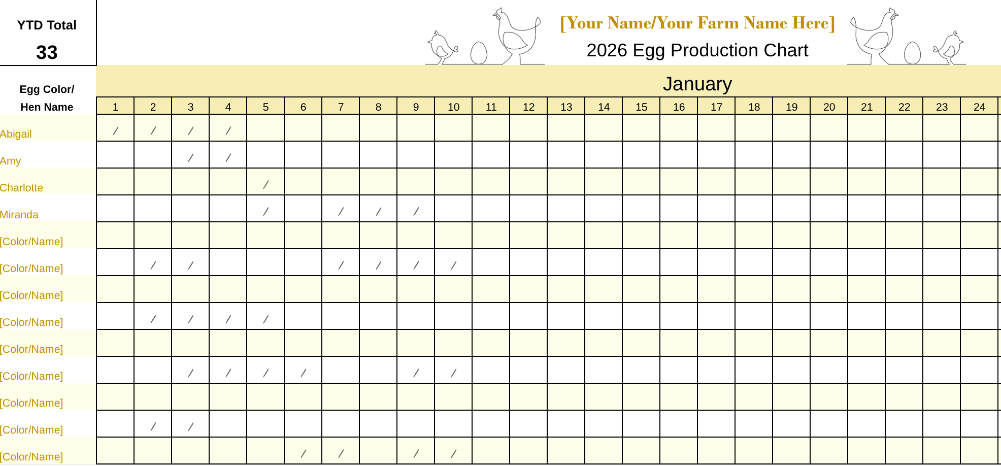 Egg Production Chart FREE Custom Printable Updated For 2026 Fresh Eggs Daily Lisa Steele