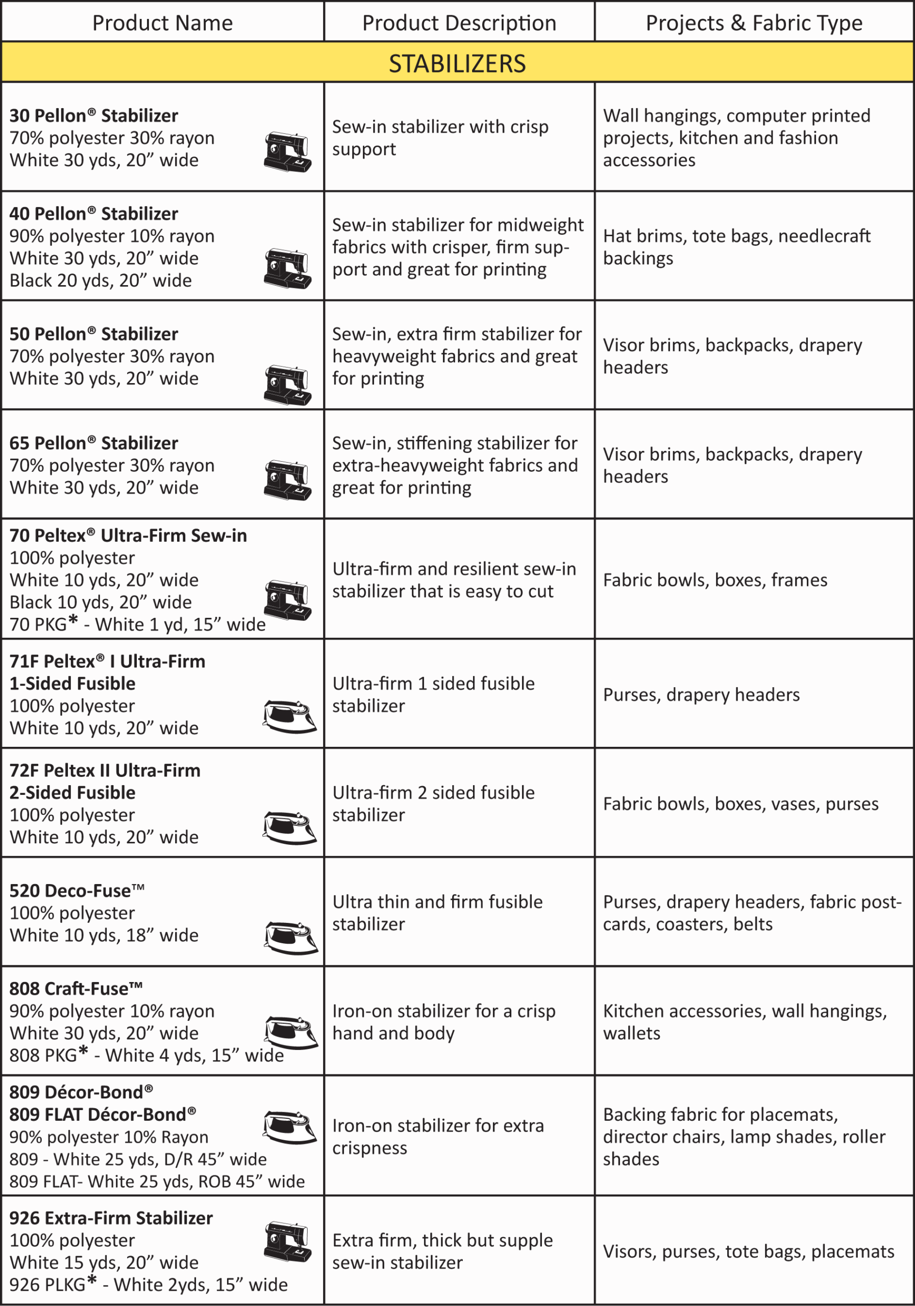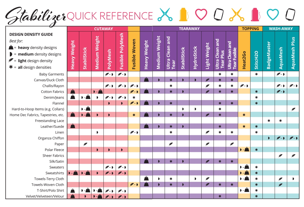 Machine Embroidery Stabilizer Guide FREE Printable Chart