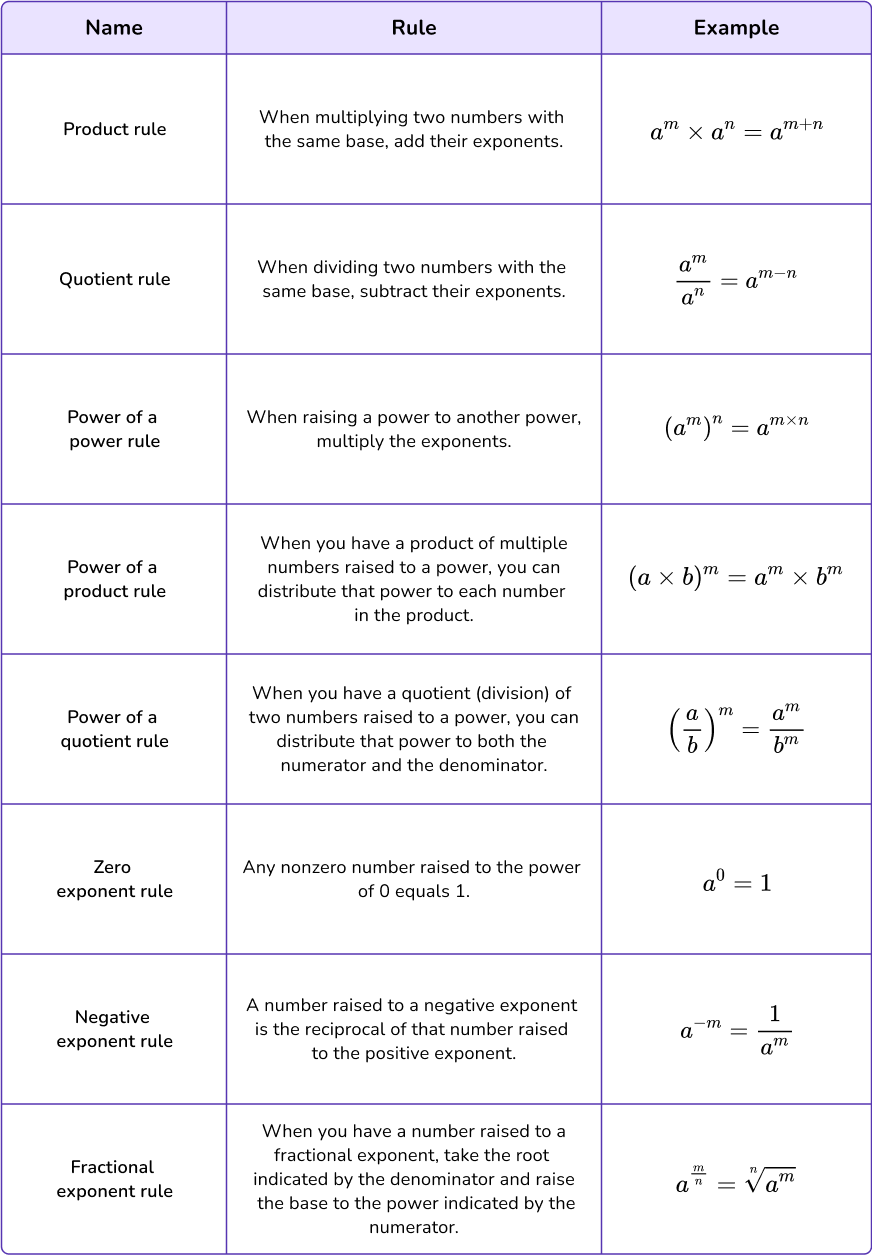 No more fumbling through your notes or searching online for answers. With the Printable Exponent Rules Chart, you’ll have everything you need in one convenient place. Math homework just got a whole lot simpler!