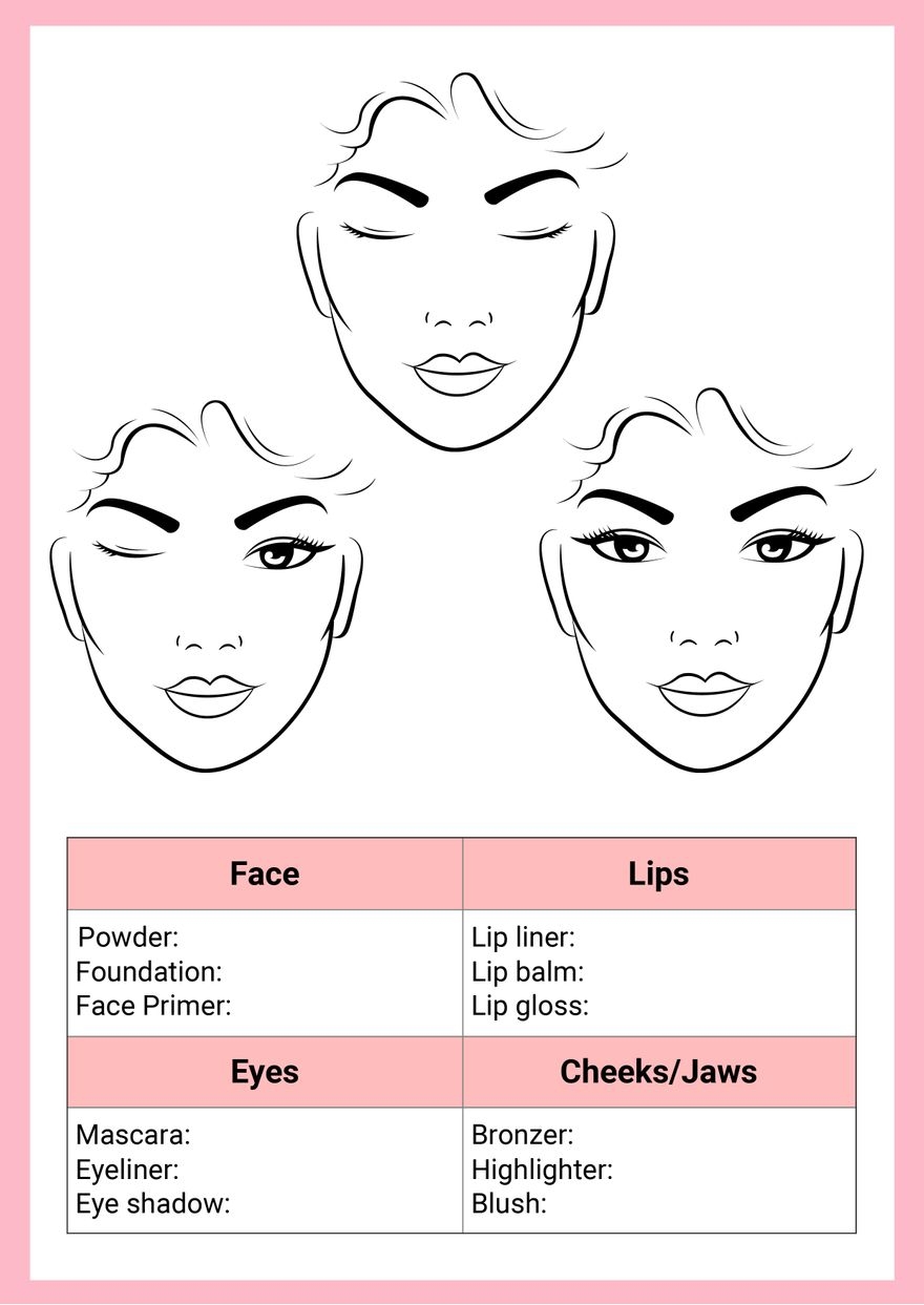 Makeup Face Chart Page Printable Download Everytinytale