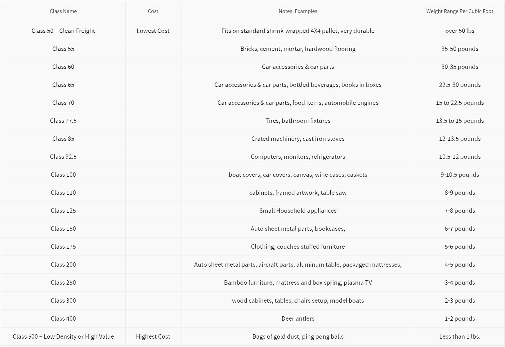 Say goodbye to the days of scouring the internet for freight class information. Our PDF chart consolidates everything you need into one convenient document, making it easy to access and reference whenever you need it.