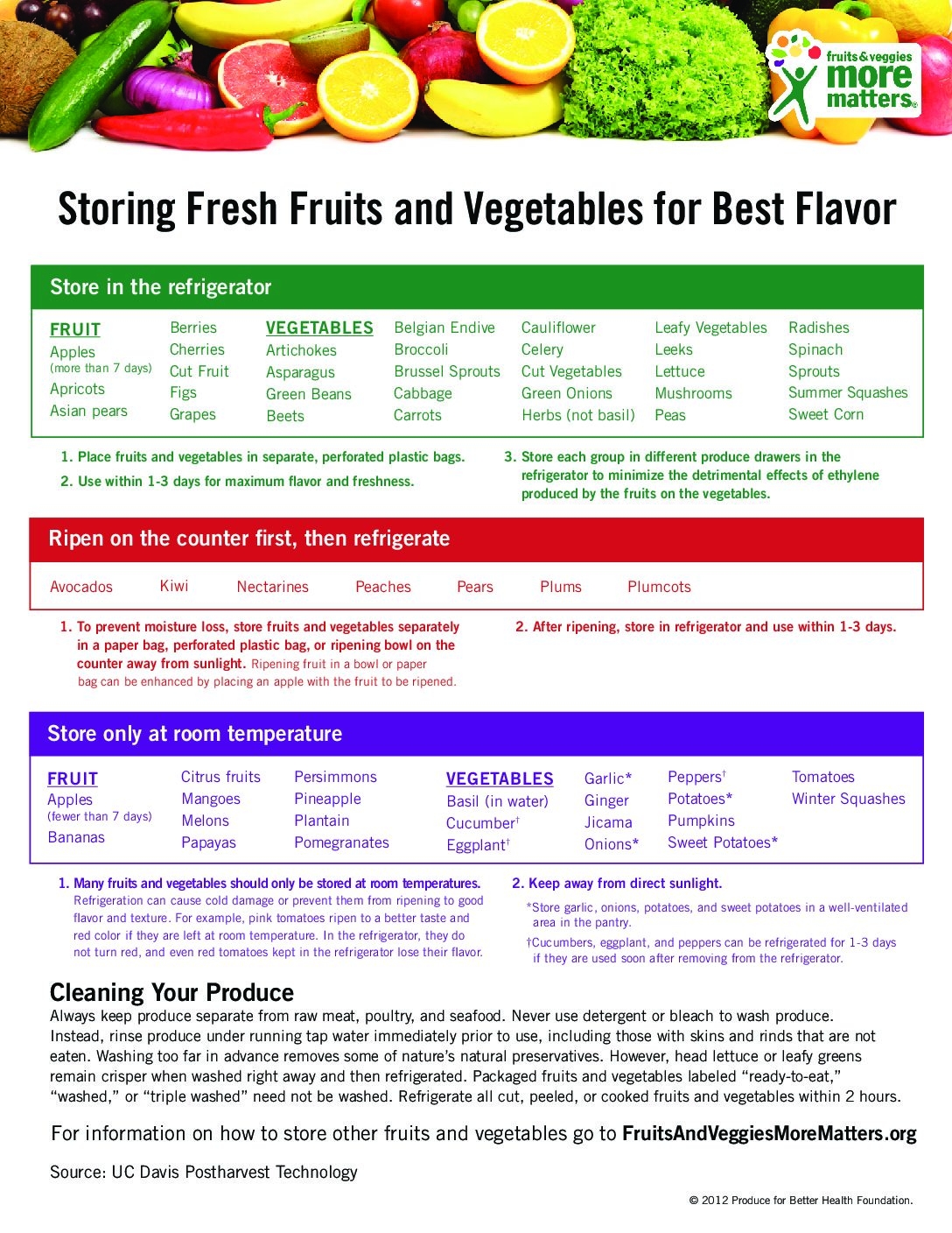 Remember, not all fruits and vegetables should be stored together. Some emit ethylene gas, which can cause others to ripen too quickly. Our chart will help you keep everything separate and fresh for as long as possible.