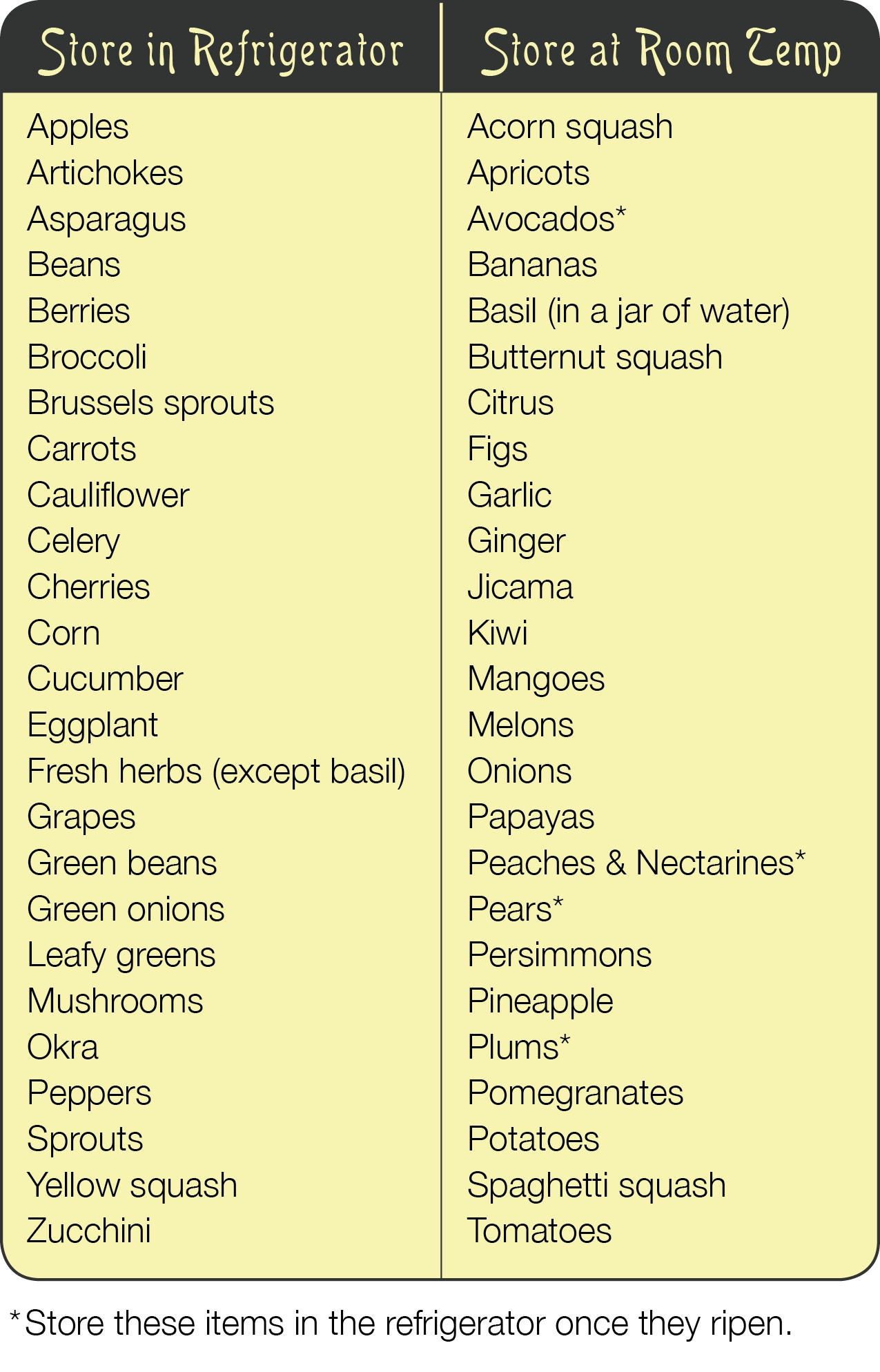 Our printable chart breaks down the best way to store each type of fruit and veggie. From apples to zucchini, we’ve got you covered. Stick it on your fridge for easy reference, so you can always be sure you’re storing your produce the right way.