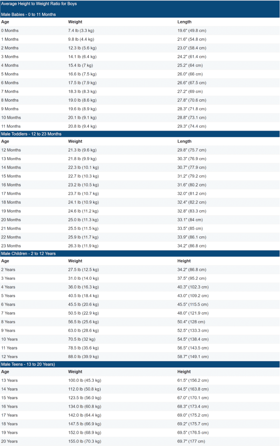 Printable Height And Weight Chart