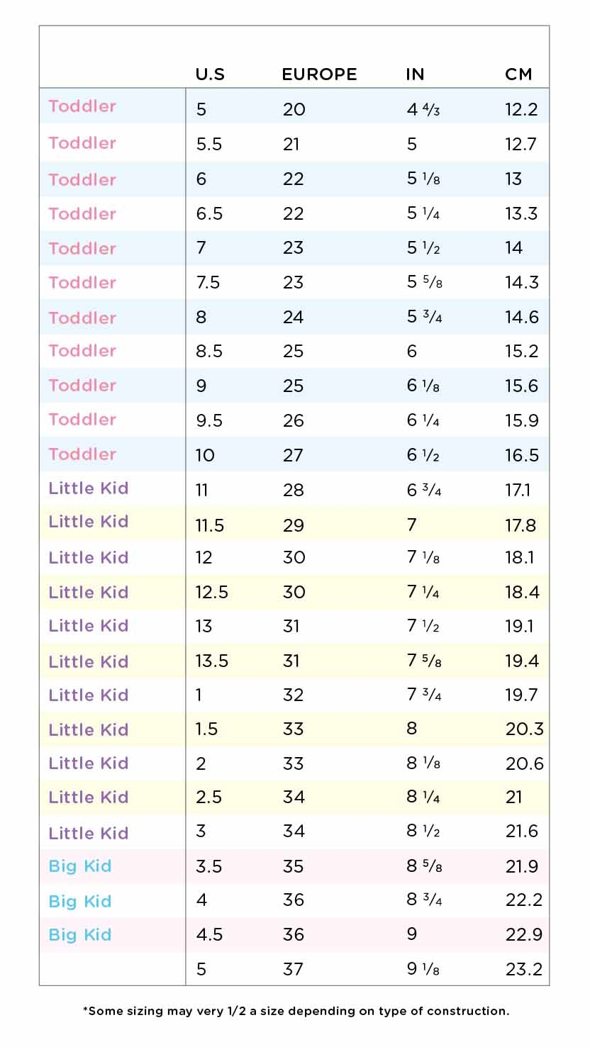 Printable Kids Shoe Sizing Chart Accurate Sizing For Happy Little Feet