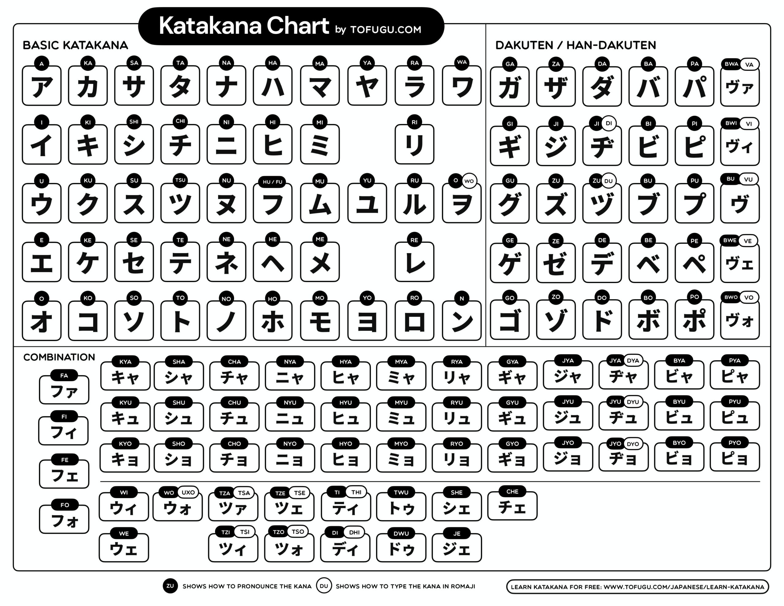 Japanese Katakana Chart