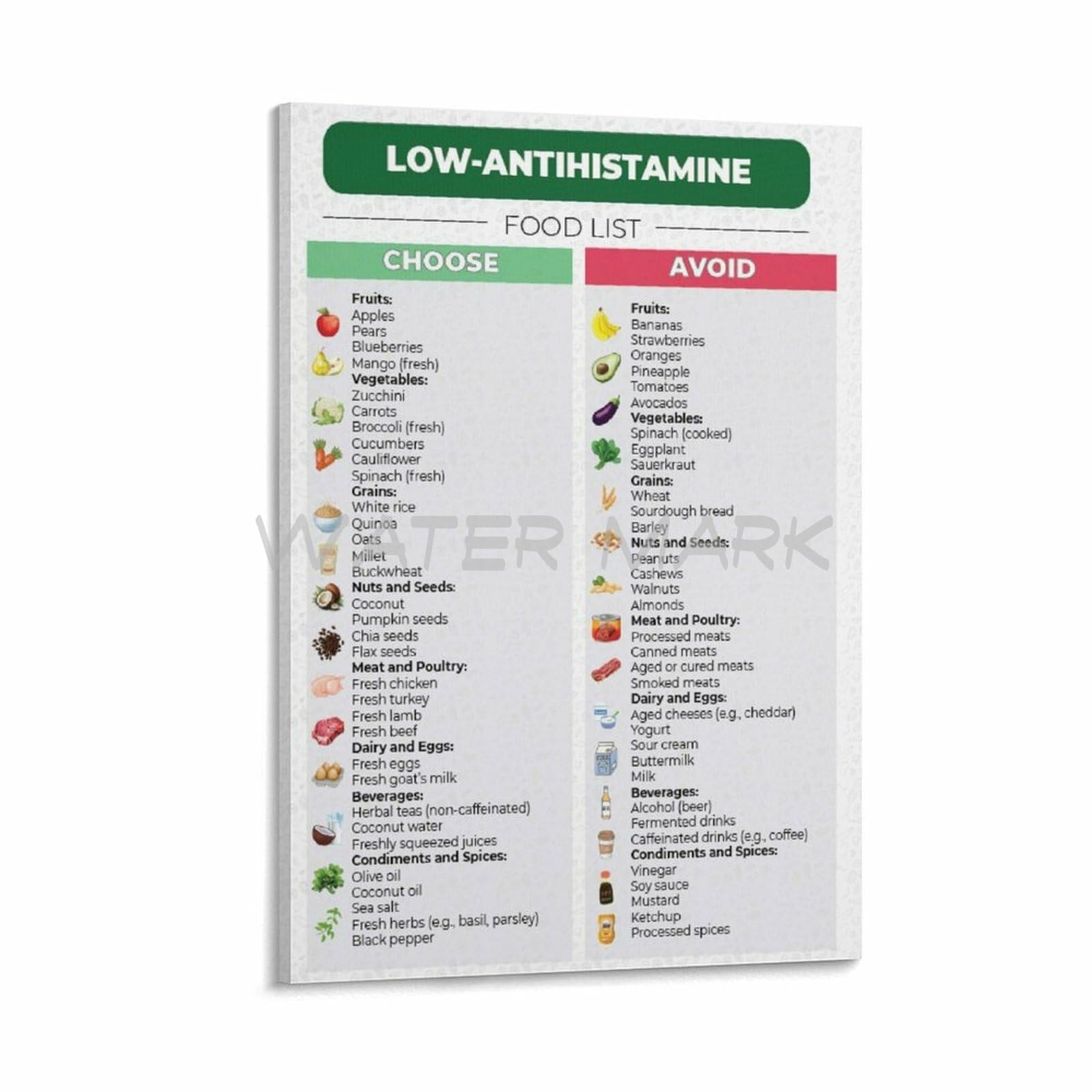 Amazon Low Histamine Food List Poster Low Histamine Foods Chart Canvas Painting Posters And Prints Wall Art For Living Room Bedroom Decor 08x12inch 20x30cm Frame style Posters U0026 Prints