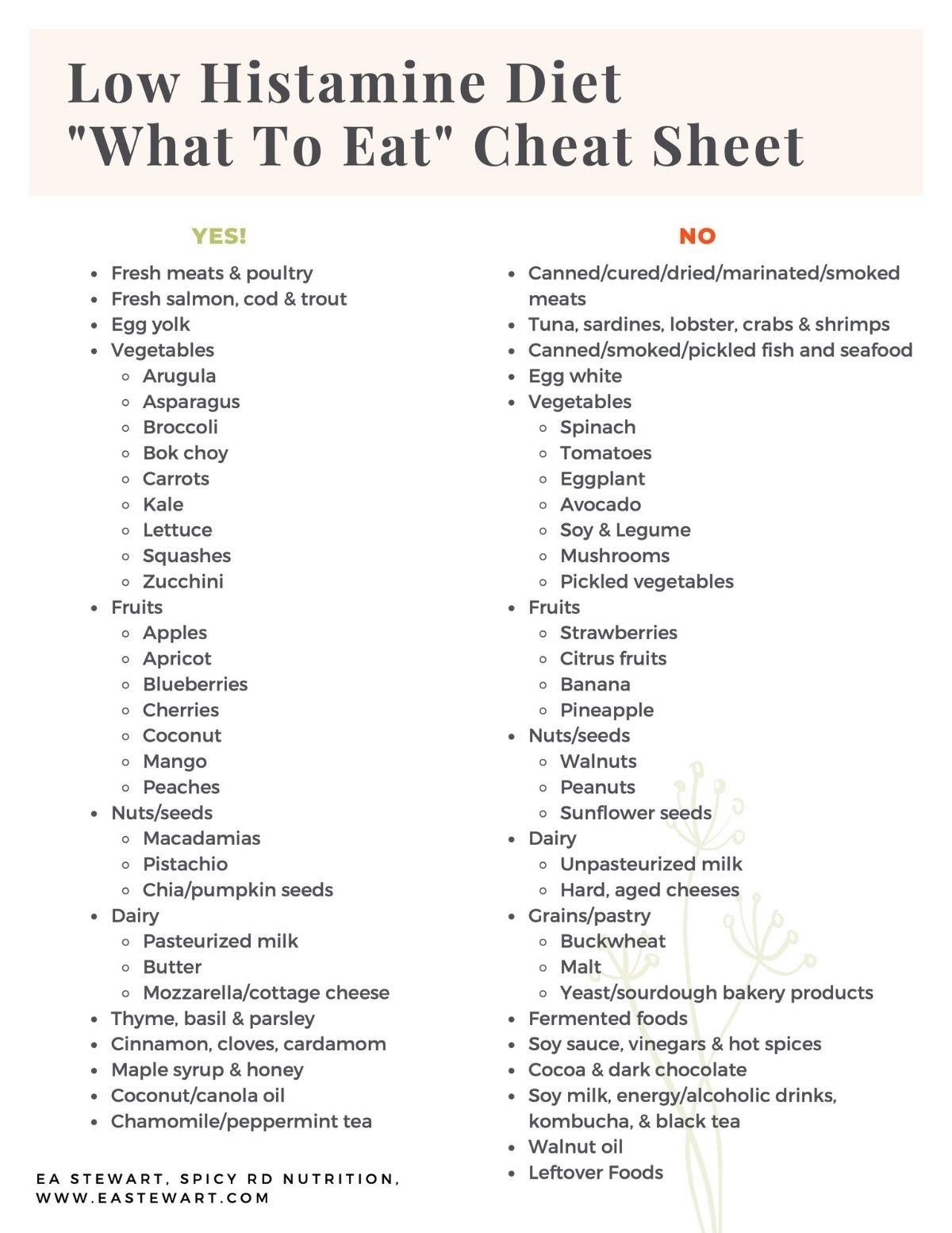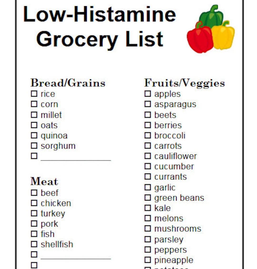 Low Histamine Food List Food Intolerance Guide Chart Low Histamine Diet Grocery List Shopping List Food Guide List Printable Pdf Etsy
