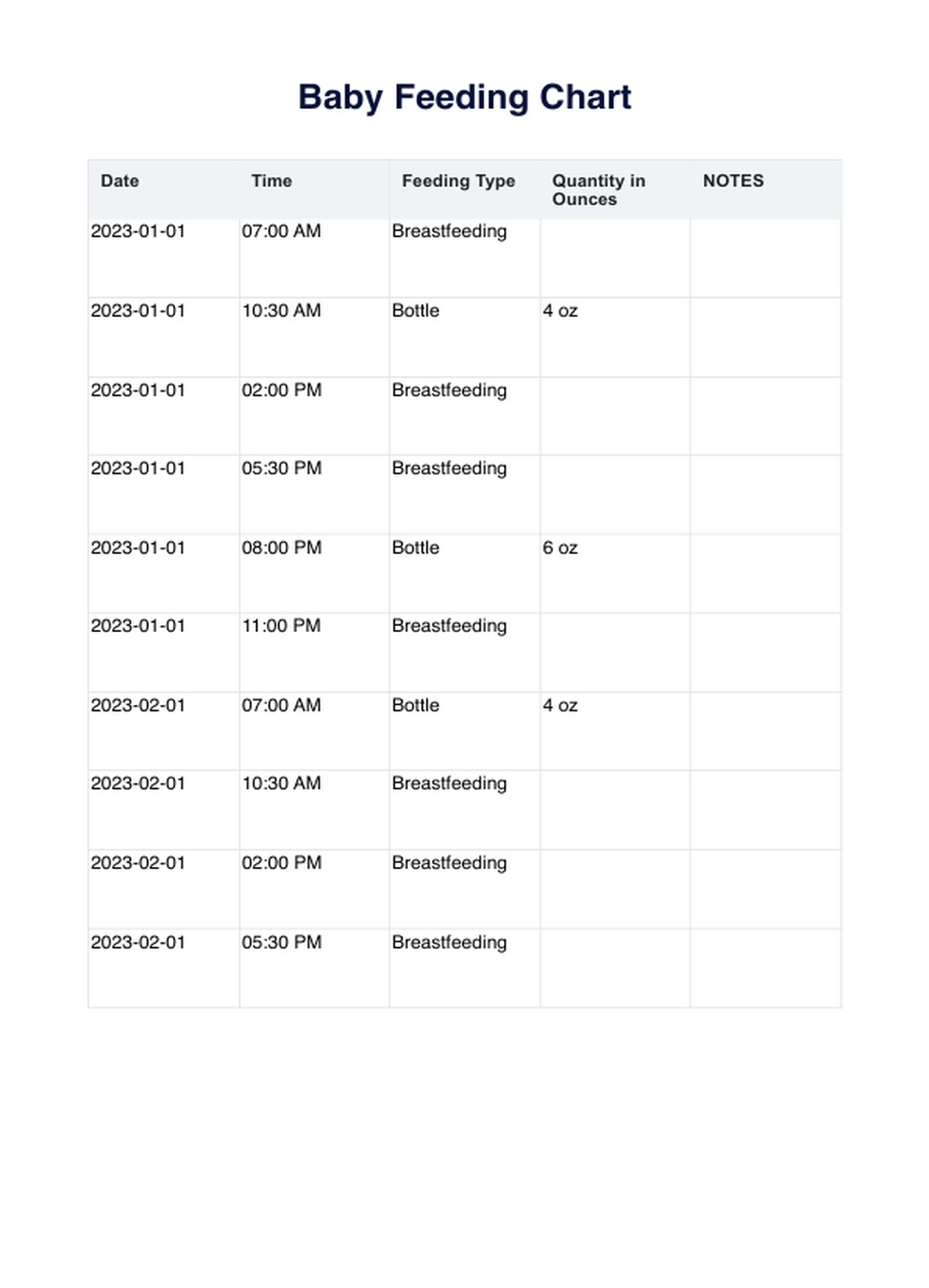 Printable Newborn Feeding Chart