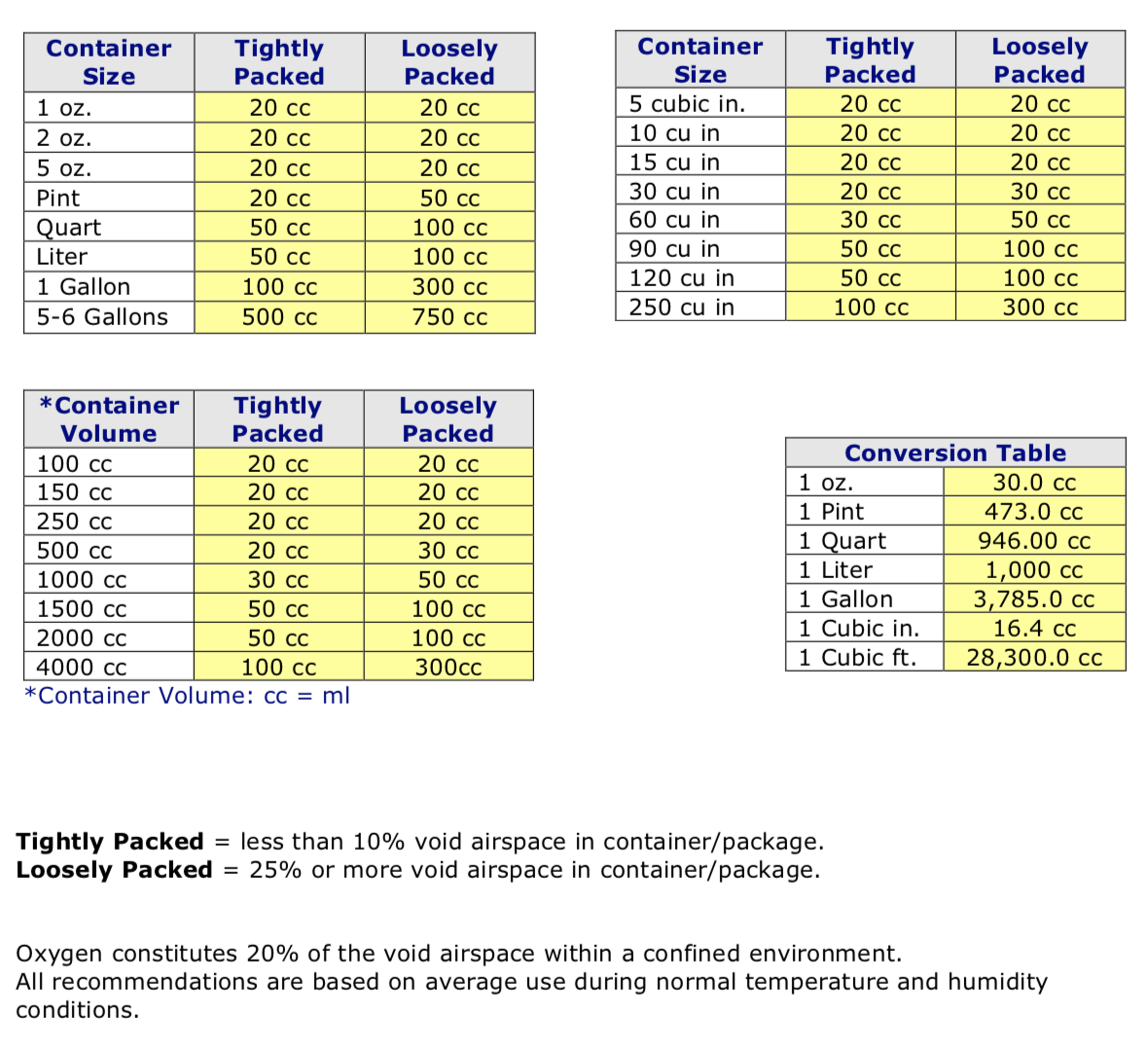 Printable Oxygen Absorber Chart: Your Food Storage Solution