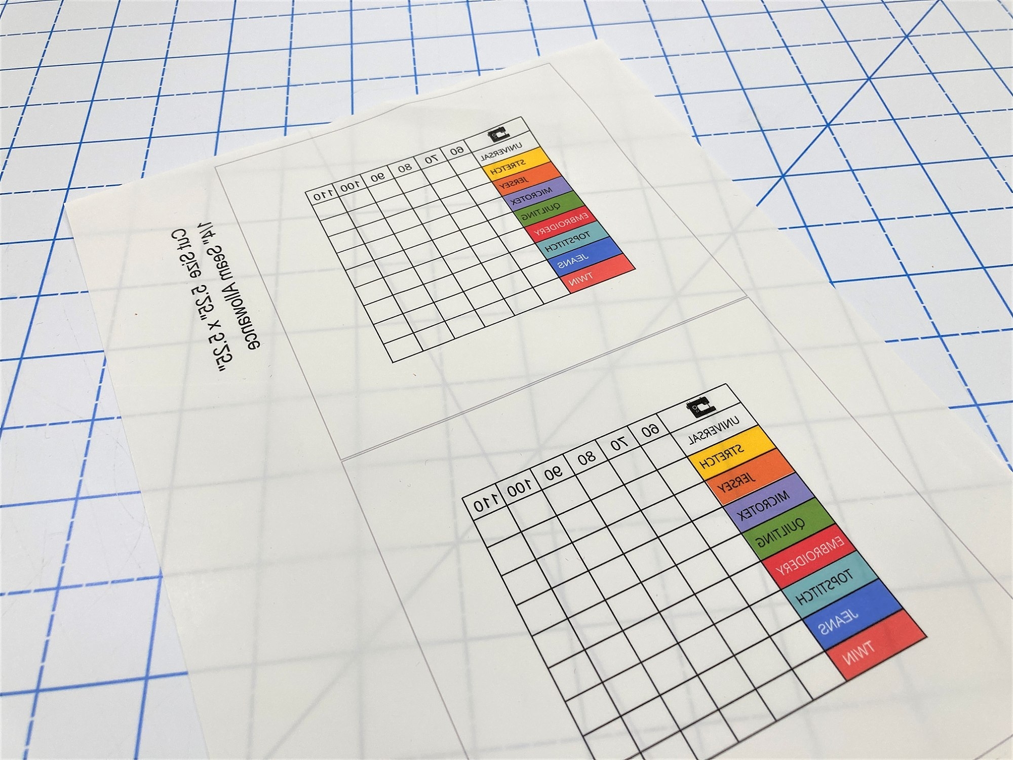 Printable Sewing Machine Needle Chart