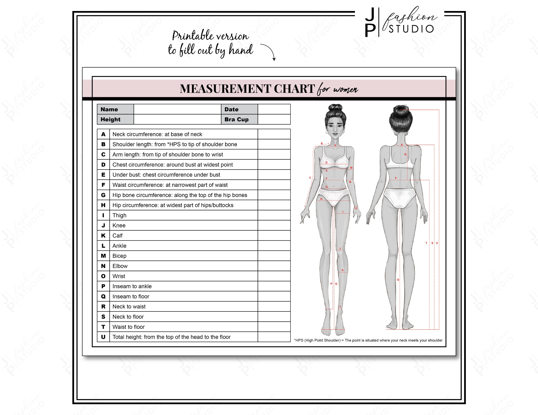 PRINTABLE Women s Body Measurement Sheet Fashion Designer Template Sewing Measurement Sheet PDF U0026 JPG Etsy Canada