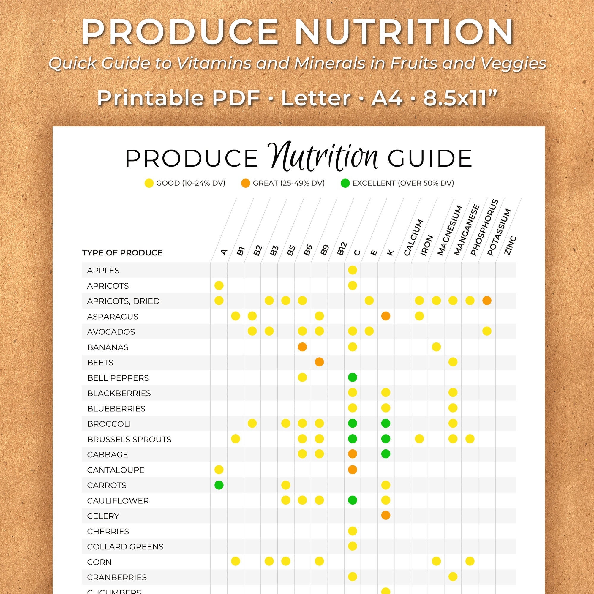 Fruit U0026 Veggie Nutrition Chart Guide To Vitamins And Minerals In Produce Printable PDF Cook Healthy With Vegetables And Fruit Etsy
