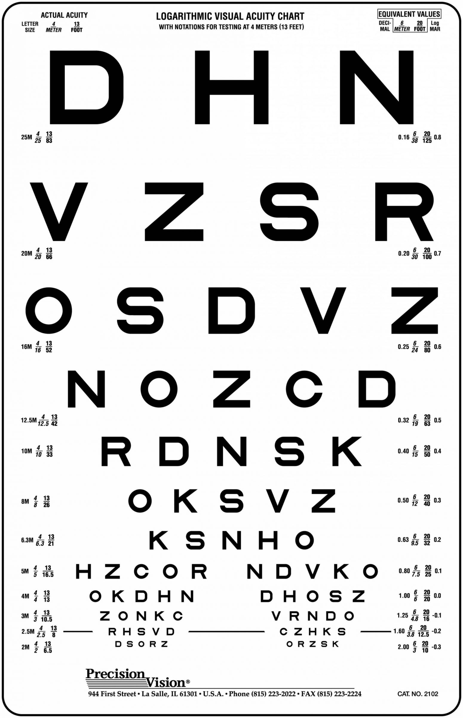 13 Foot Distance Sloan Test Precision Vision